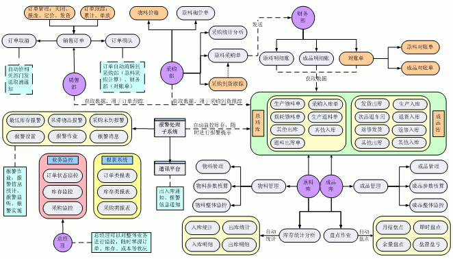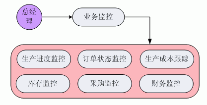 u 總經(jīng)理及相關(guān)人員,可以隨時對業(yè)務(wù)進行整體監(jiān)控,掌握訂單、生產(chǎn)、成本、庫存、采購、財務(wù)等狀況;