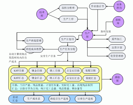 生產(chǎn)管理是整個(gè)系統(tǒng)的重點(diǎn),其中包含了生產(chǎn)計(jì)劃、任務(wù)分配、成本核算、生產(chǎn)作業(yè)、生產(chǎn)匯總、進(jìn)度監(jiān)控等重要業(yè)務(wù)節(jié)點(diǎn)。