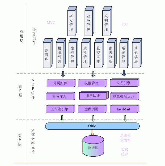 采用前衛(wèi)的IOC容器管理技術(shù)和AOP思想,將交叉業(yè)務(wù)各自分離為切面,在必要的時候,又將各個切面靈活的組合在一起,為系統(tǒng)超強(qiáng)的擴(kuò)展性、維護(hù)性提供保障。